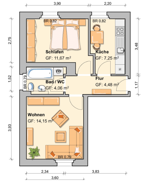 Diese Wohnung ist ideal für Paare. Sie wohnen in einer ruhigen Wohngegend.